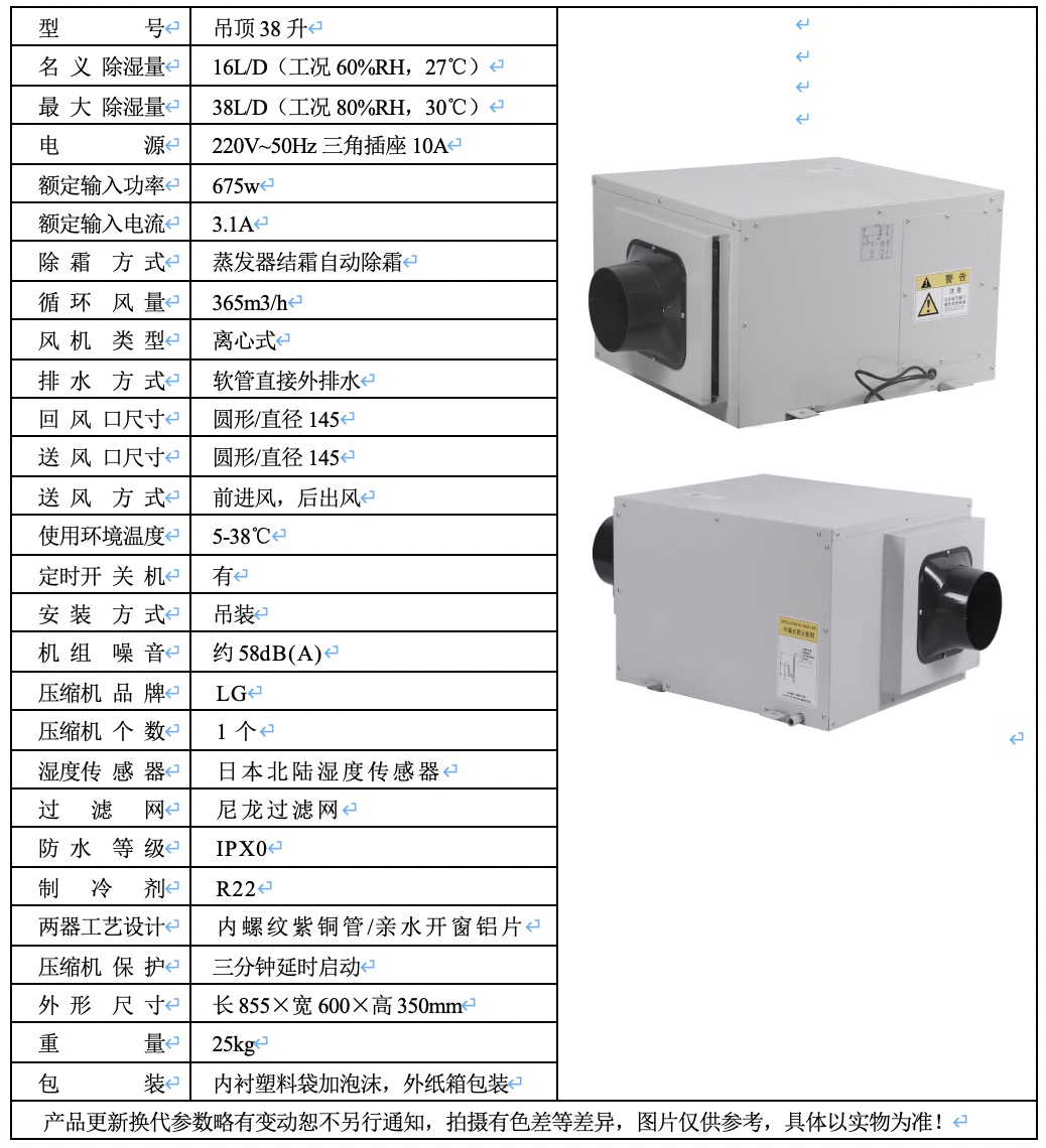 吊顶除湿机SJD-38E 点击返回